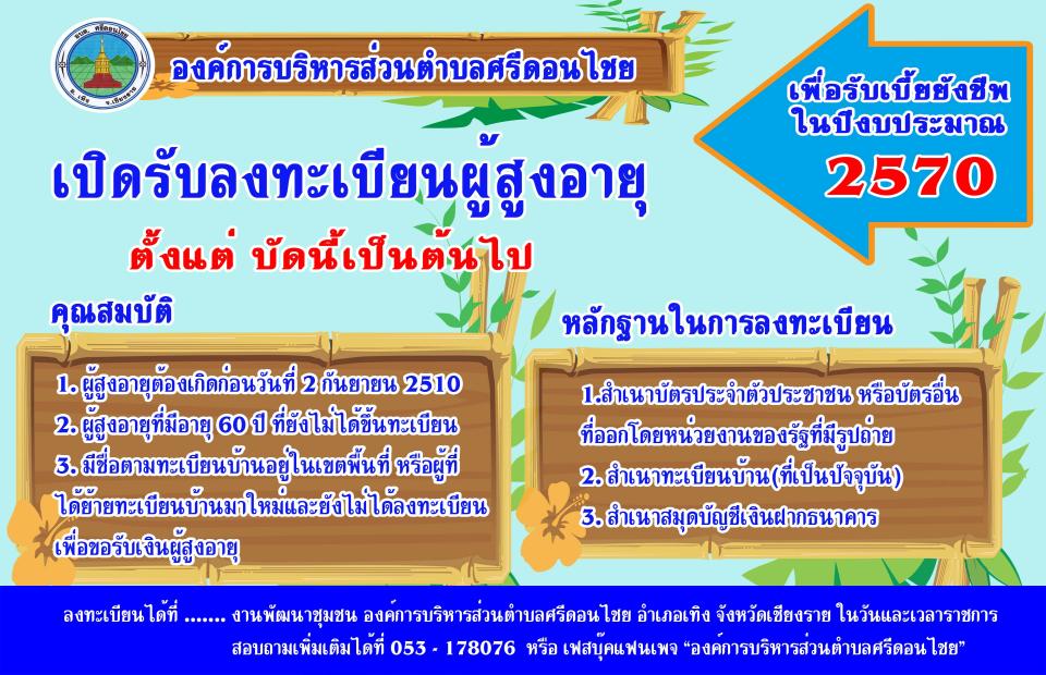ประชาสัมพันธ์การขึ้นทะเบียนขอรับเบี้ยยังชีพผู้สูงอายุ รายใหม่