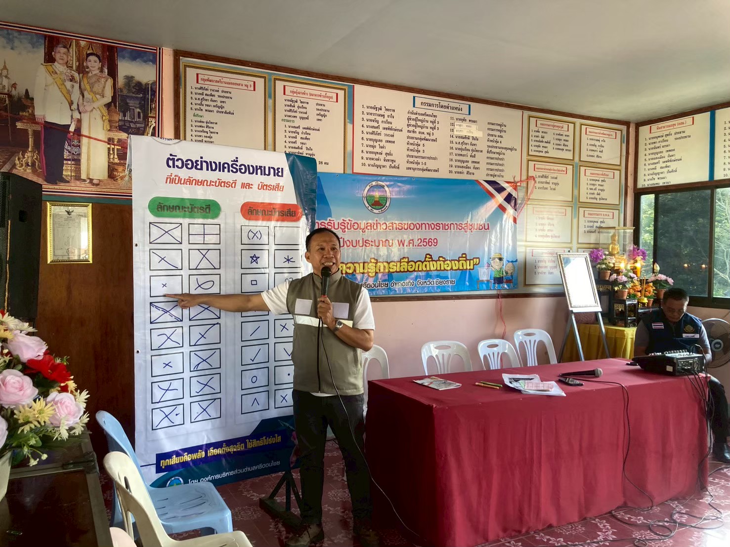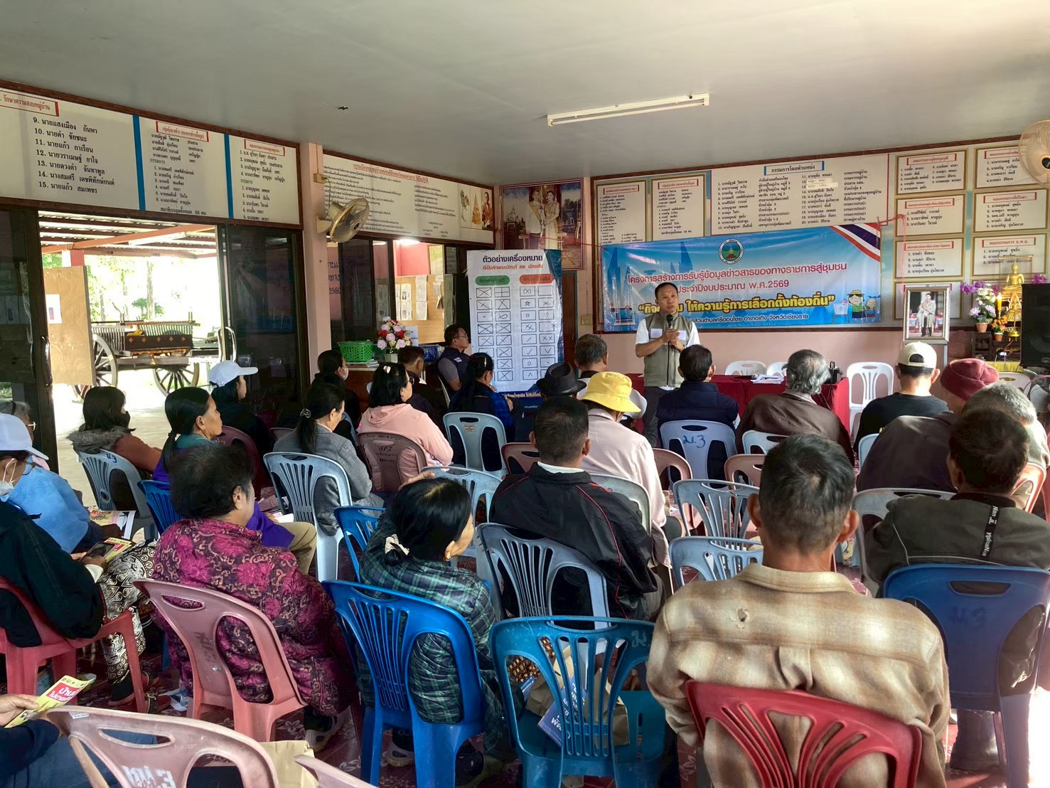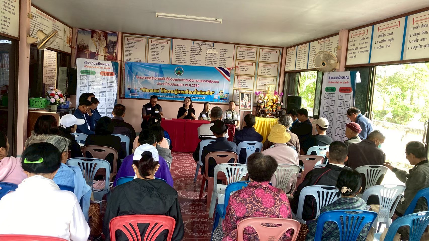 โดยบรรยายให้ความรู้เกี่ยวกับผู้มีสิทธิเลือกตั้ง การตรวจสอบรายชื่อ การขอเพิ่มชื่อ ถอนชื่อและหน้าที่การไปใช้สิทธิเลือกตั้ง ผลของการเสียสิทธิเลือกตั้ง บรรยายเกี่ยวกับบัตรเลือกตั้งและการทำเครื่องหมาย